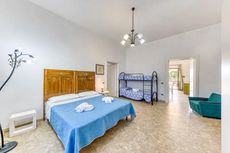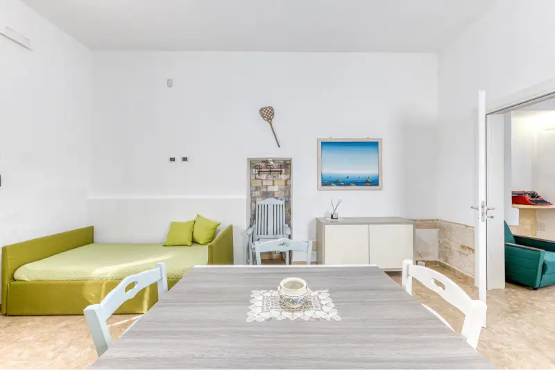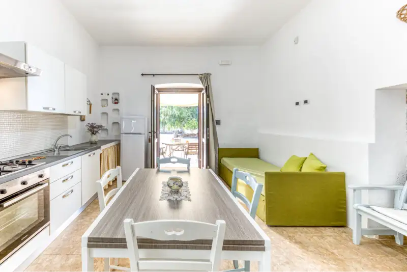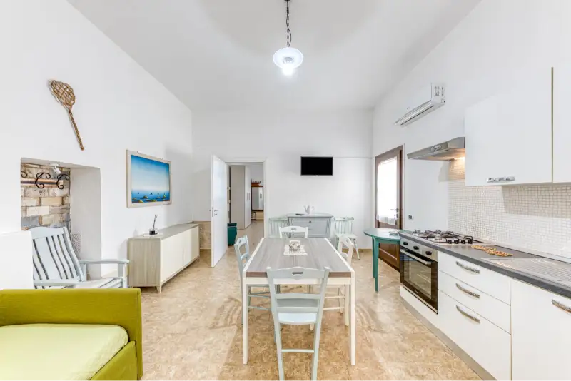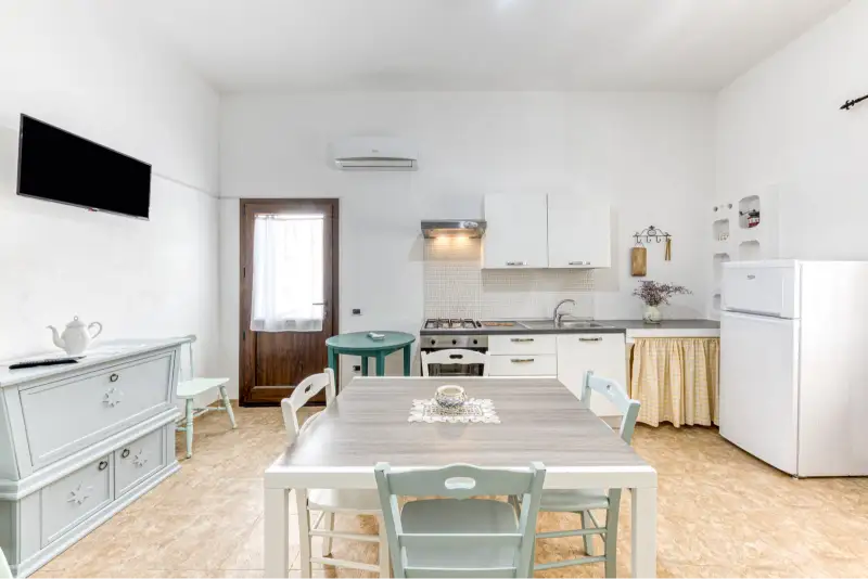 Appartamento Eucalipto, climatizzati al piano terra e al primo piano ,composti da 4 posti letto (una camera matrimoniale e un letto a castello), bagno privato, soggiorno pranzo con angolo cottura.