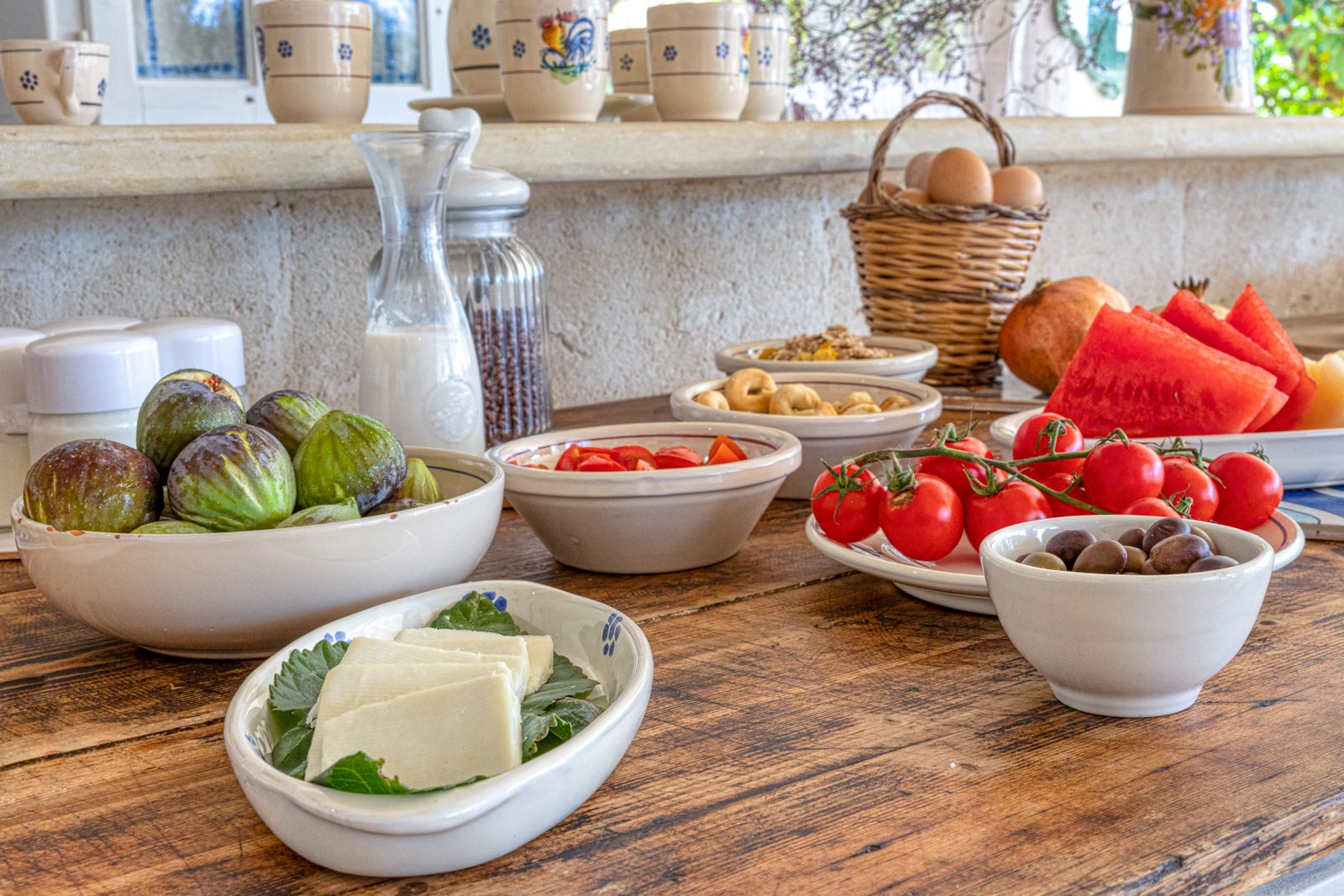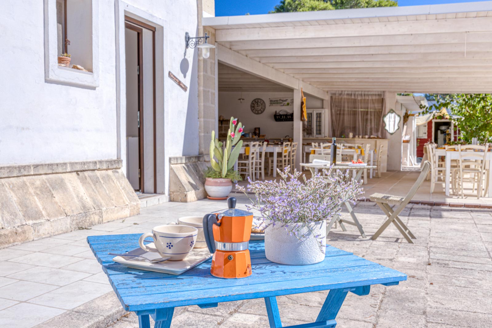 Masseria Prisuti vi accoglierà nel rilassante ondeggiare delle canne della terra salentina, tra macchia e ulivi, fichi d’india e alberi da frutto. Permettendovi di godere del silenzio e della quiete della campagna e al contempo di ascoltare “lu rusciu de lu mare”, il mormorio delle onde.
