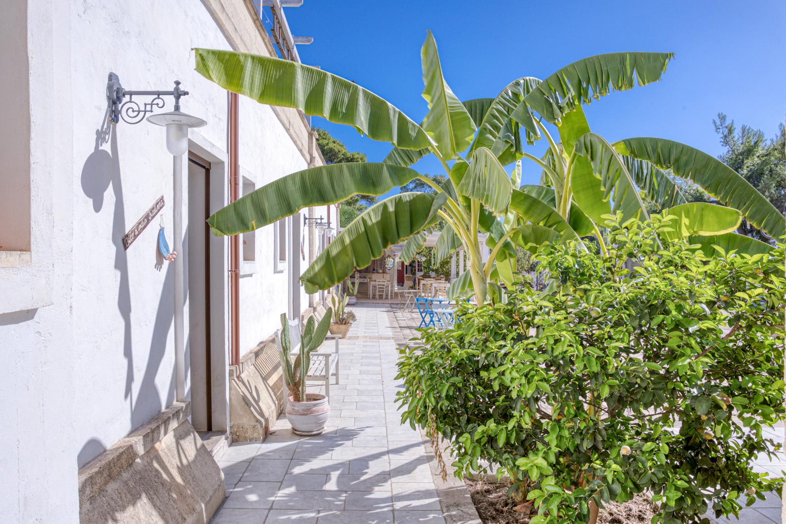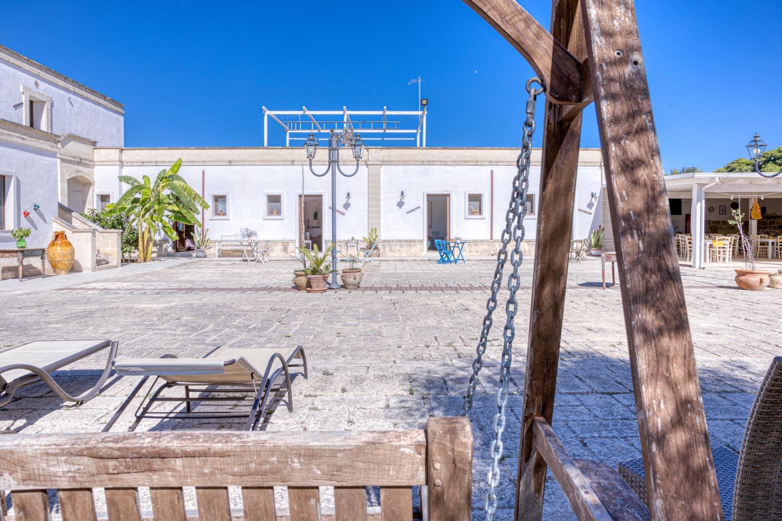 Struttura dei primi del ‘900, interamente realizzata in conci di tufo bianco, la costruzione conserva le caratteristiche tipiche delle masserie salentine. Un’ampia aia si apre davanti alle camere e gli appartamenti in un complesso armonico e piacevole nella sua rusticità. Gli ampi spazi all’aperto attrezzati con sdraio e gazebo permettono di godere dello splendido panorama in pieno relax immersi nella natura salentina e a due passi dalle dune secolari e un mare caraibico.