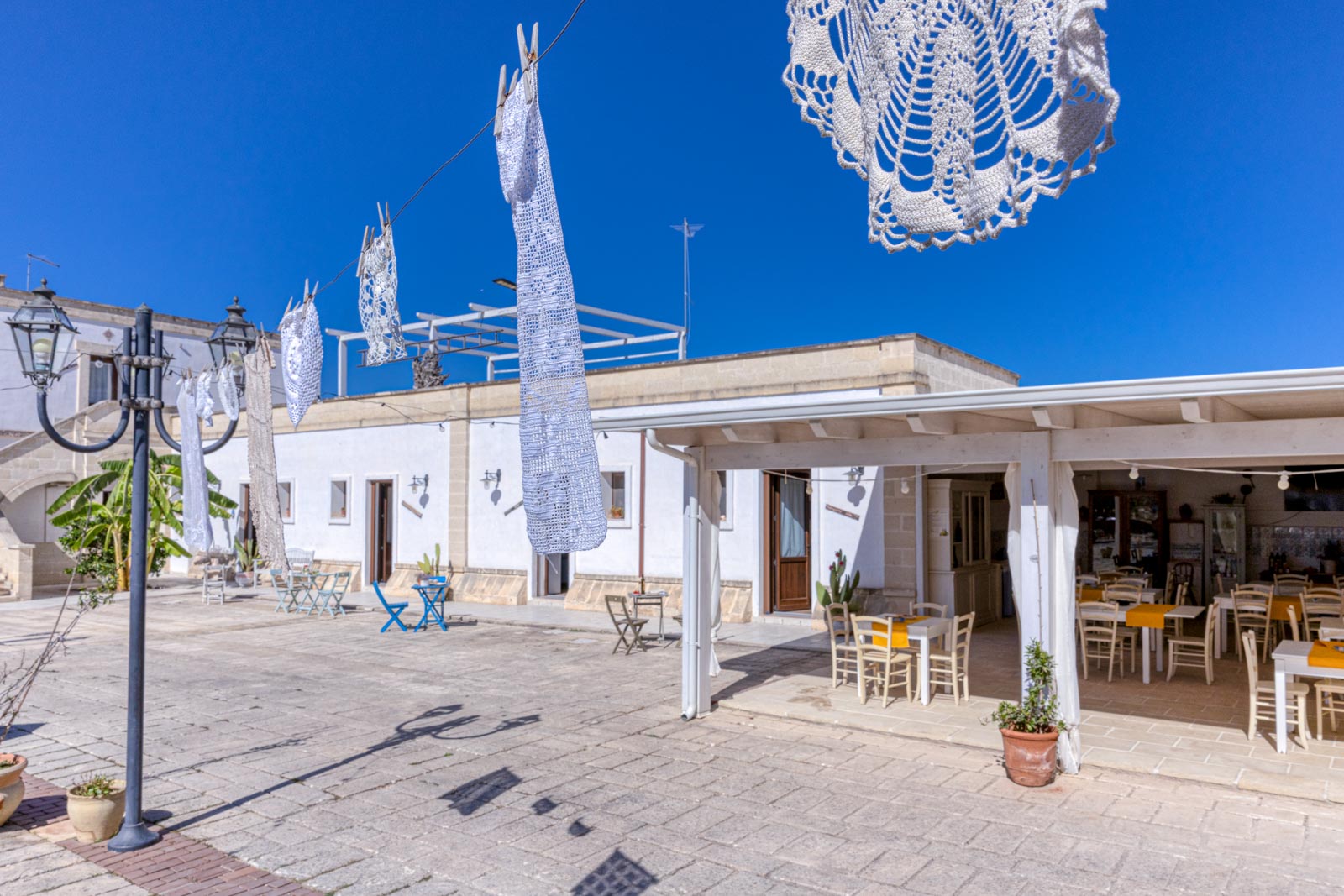 La Masseria si trova infatti al confine tra le 3 province salentine, ad 800 metri dalle spiagge di Punta Prosciutto, a 2 km dall’oasi della Salina Monaci, a 15 km da Porto Cesareo e a 45 km da Gallipoli e da Lecce.